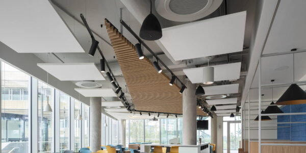 Akustik yüzer tavan; Ses yalıtımı sağlayan akustik yalıtıma ve ses düzenlemelerine katkıda bulunan dekoratif ses yalıtım ürünü olarak kullanılmaktadır.